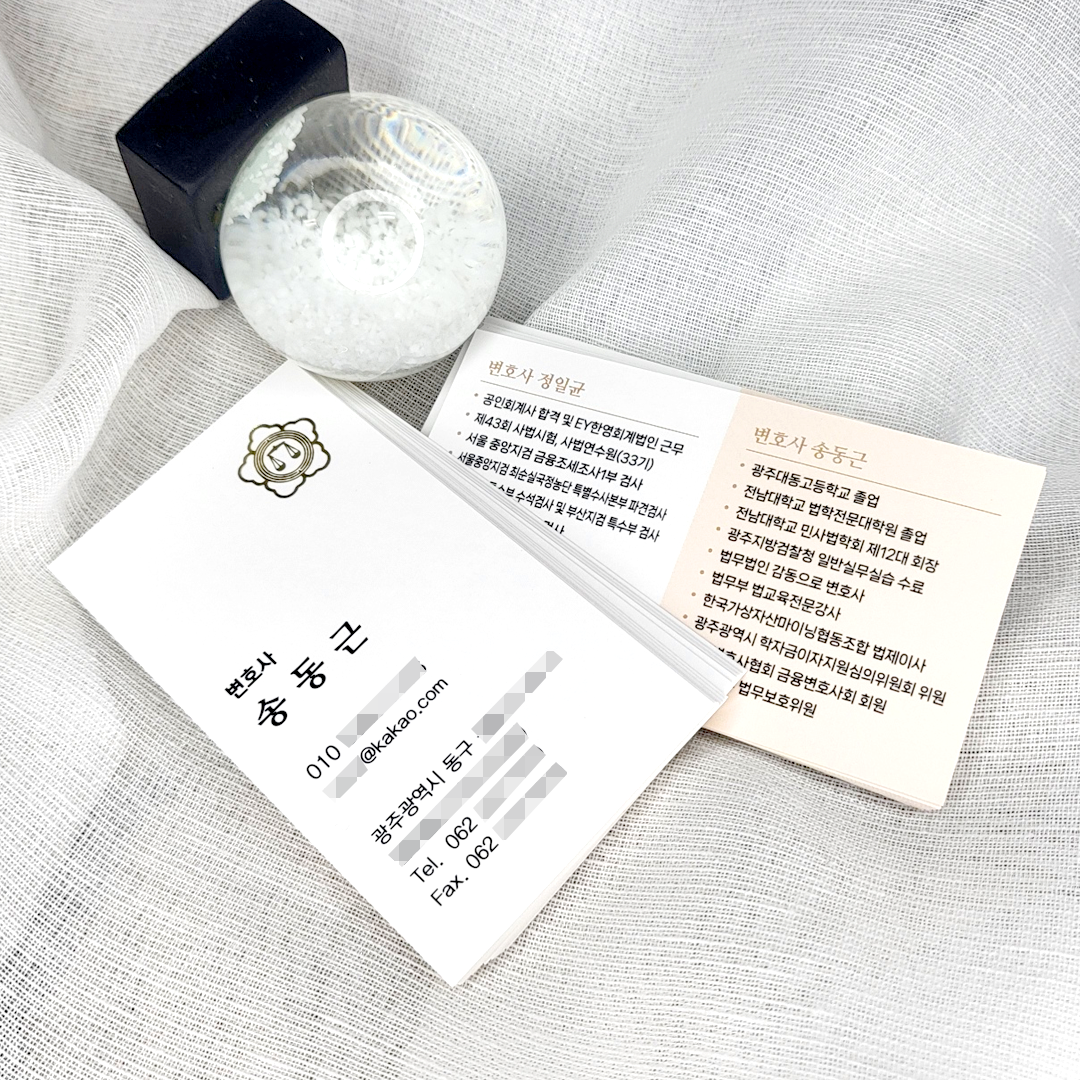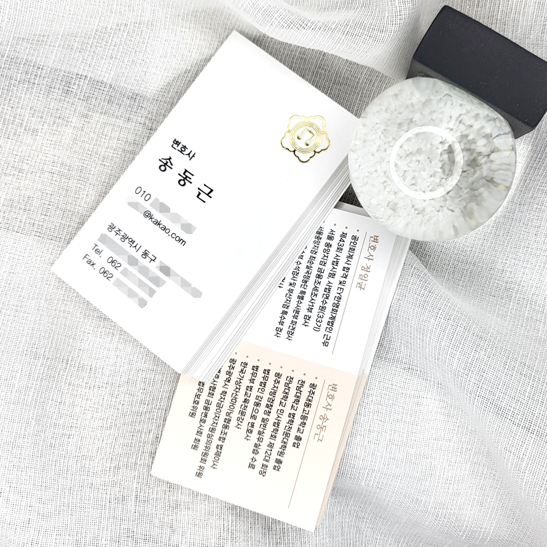 변호사 명함으로 금박을 넣어 제작하여 심플한듯 고급스러움이 특징인 사례