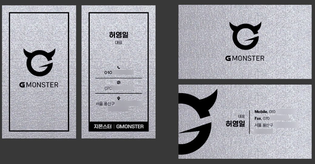 브랜드의 가치가 중후함이 느껴지는 만큼 명함의 디자인 또한 중후함을 표한하도록 하였습니다.